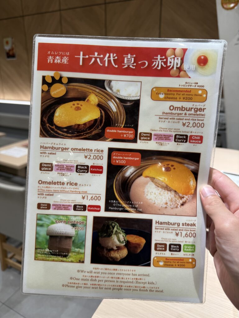 ソースはデミグラスに博多明太クリーム、黒カレー、そしてケチャップの四種類から選べます。