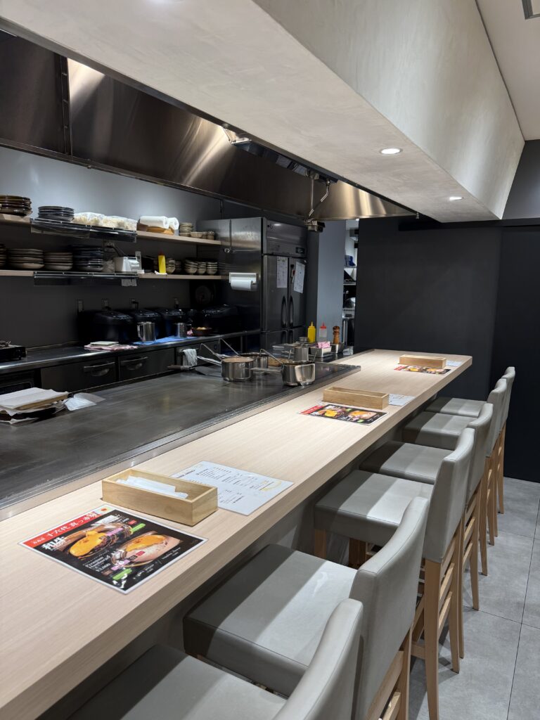 カウンター席の前には鉄板、ここでオムレツを焼き上げる光景を見ることができ圧巻でした!