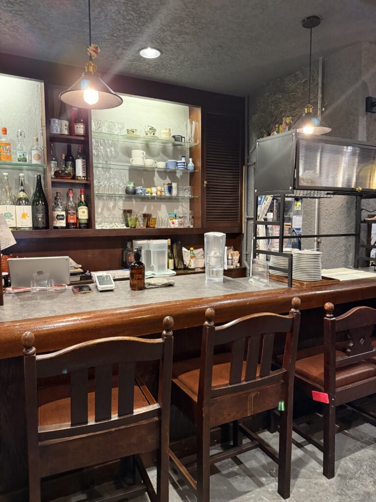 お店は純喫茶を改装したみたいで、シックモダンな雰囲気がただよいカウンター席とテーブル席がありました。