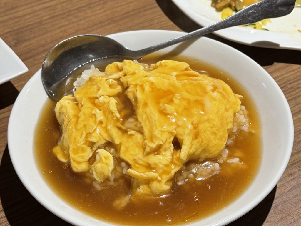 まだまだご飯物、天津飯はふんわり卵と餡の絶妙なコンビネーション。