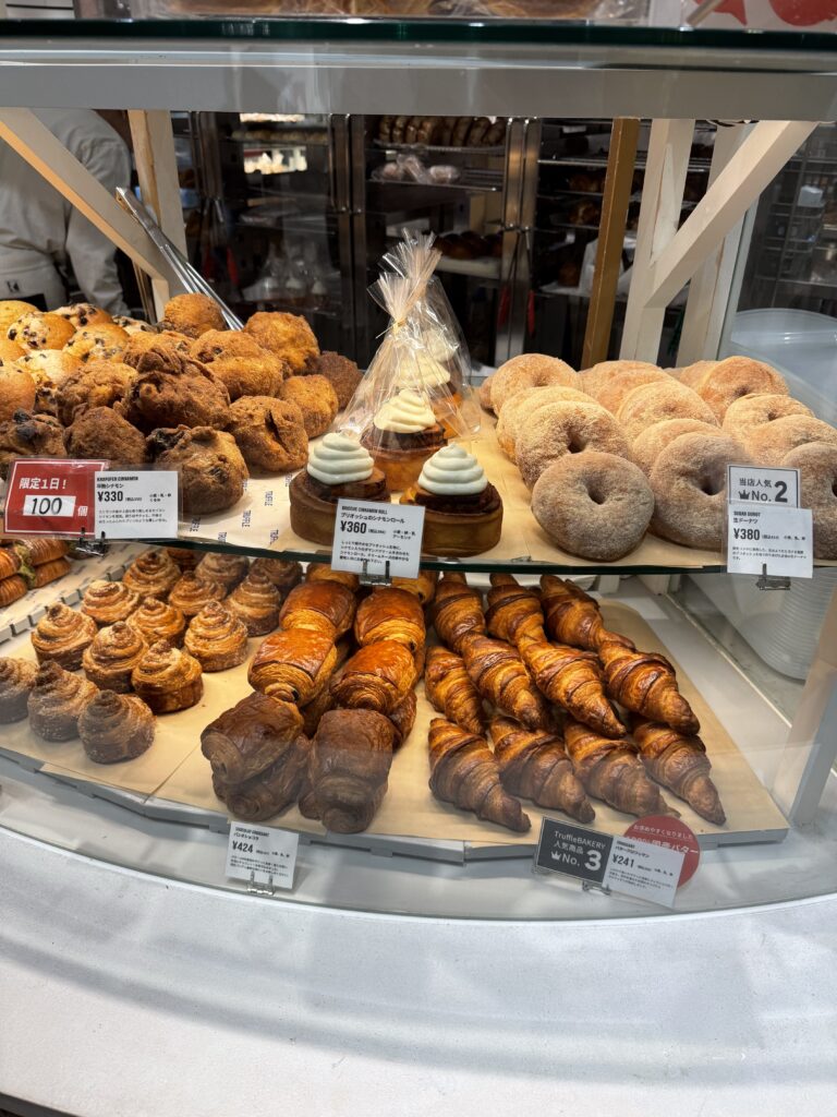人気No.1は白トリュフの塩パンで白ドーナツ、バタークロワッサンという順で人気。