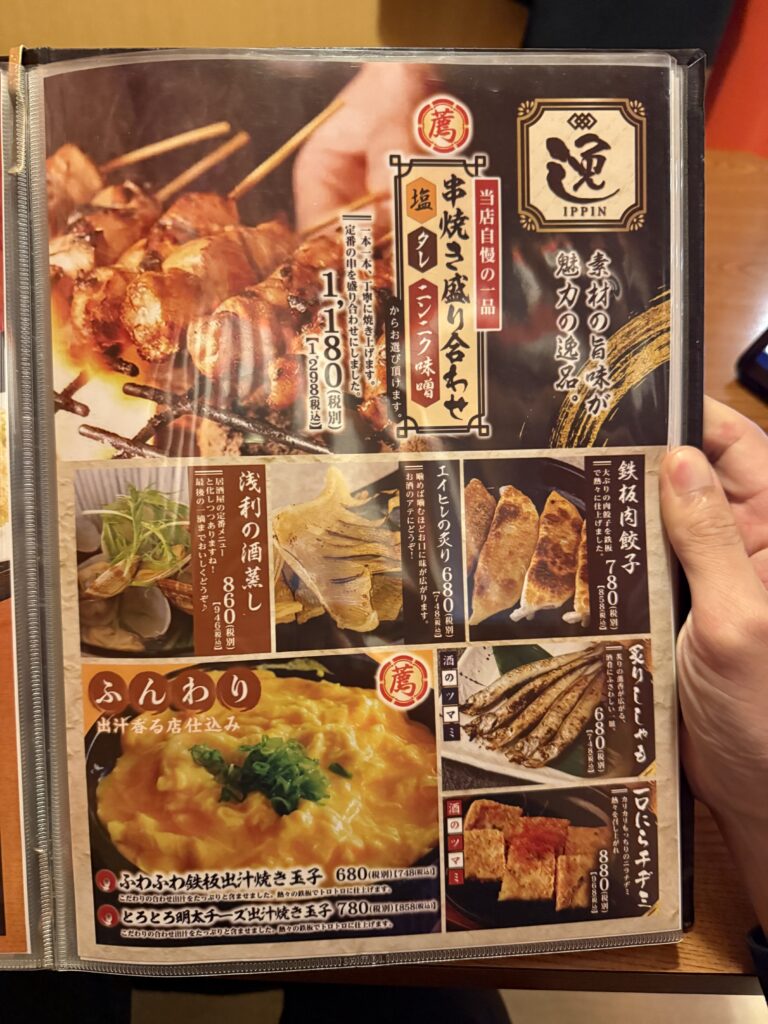 串盛り合わせ、肉餃子、ししゃも、出汁焼き玉子と行った珍しいものも。