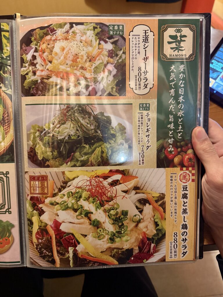 サラダはシーザーサラダ、チョレギサラダ、蒸し鶏のサラダ。