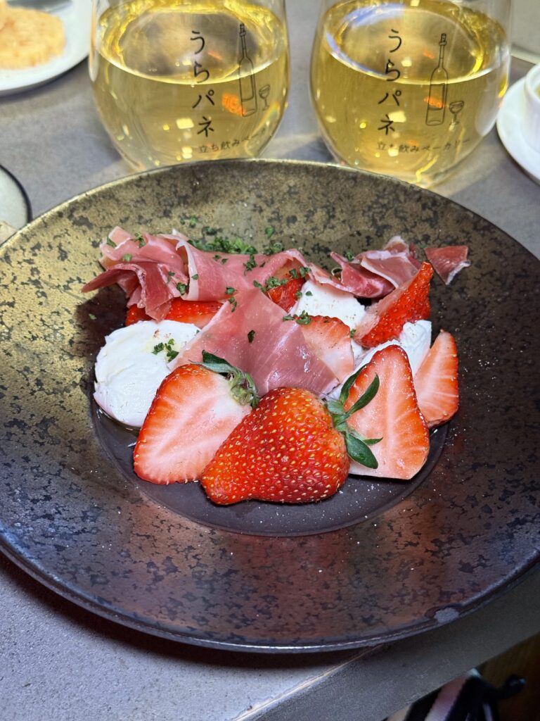 塩気の効いた生ハムにモッツアレラチーズ、苺のコンビネーションが最高です。