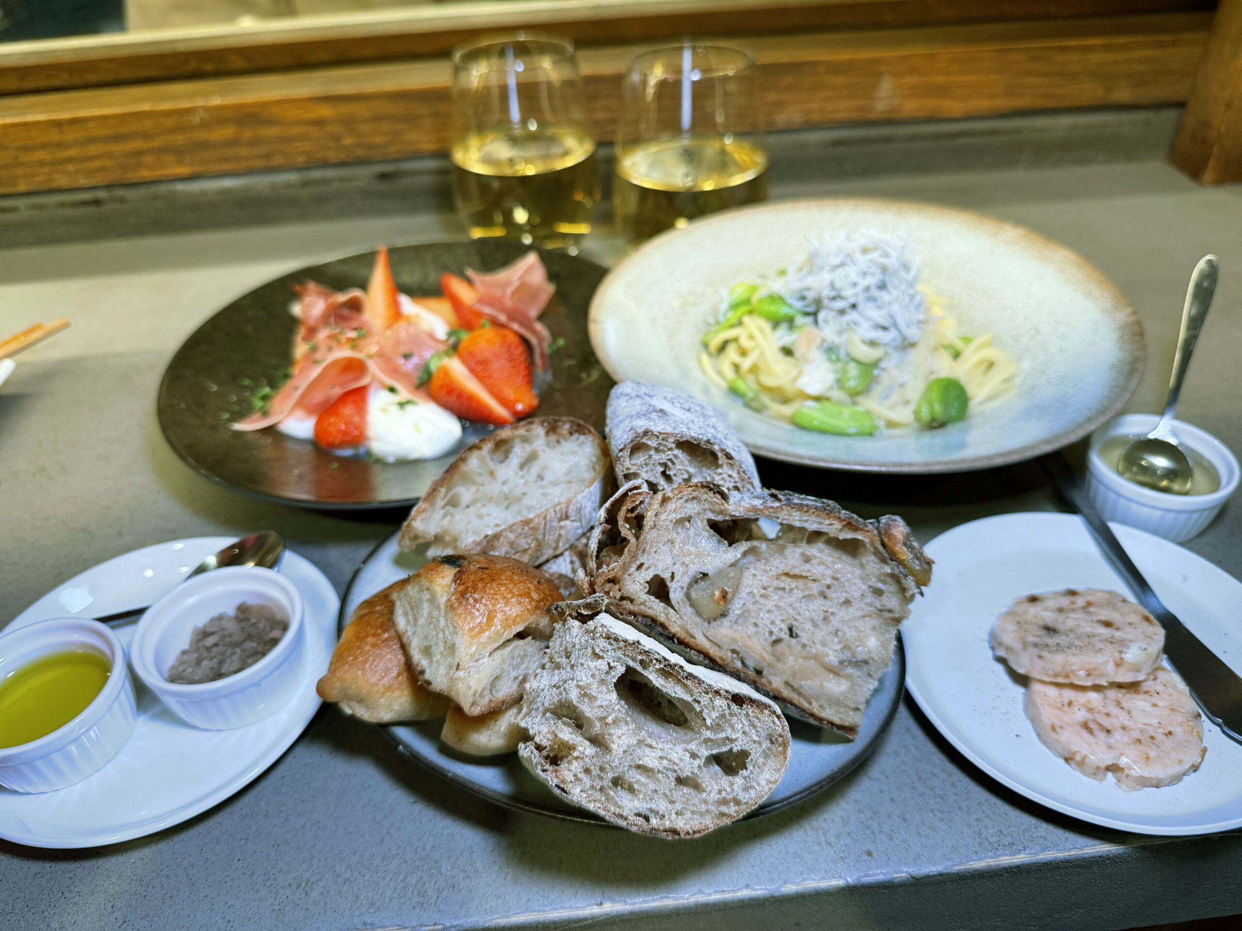 様々なパンとそれに合うパスタやアヒージョなどの創作料理をぜひ味わってみてください!