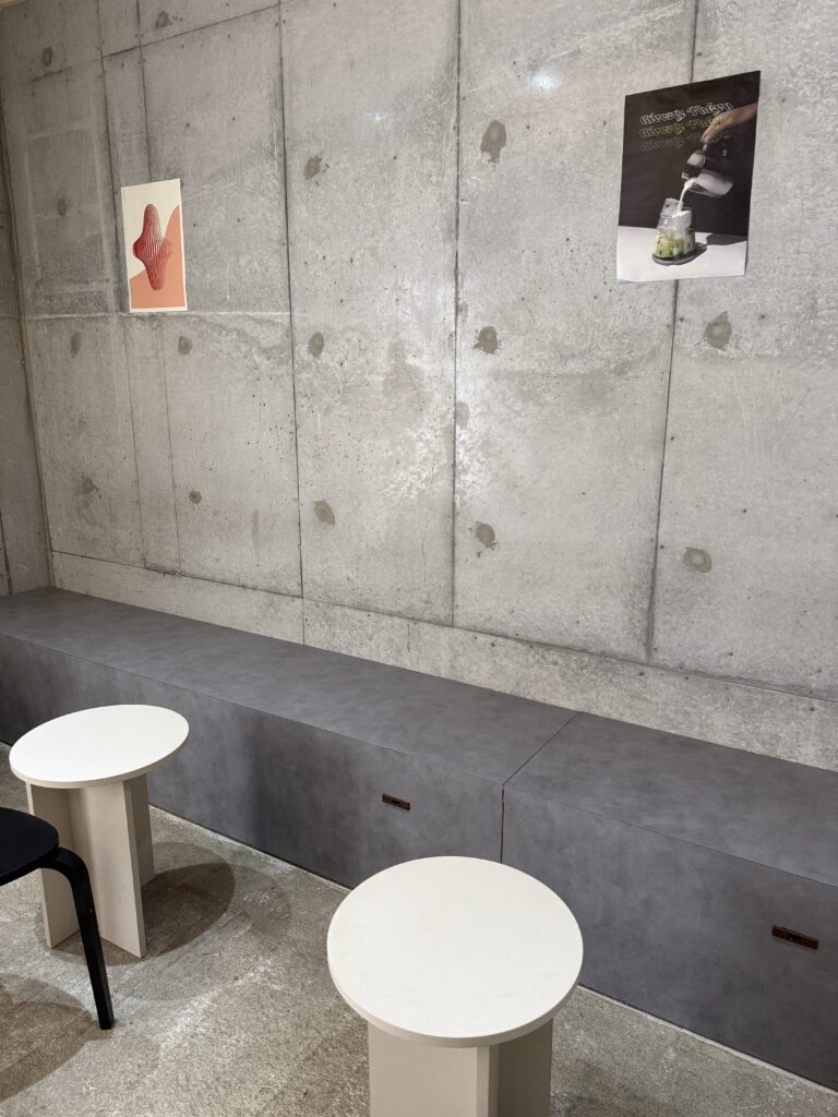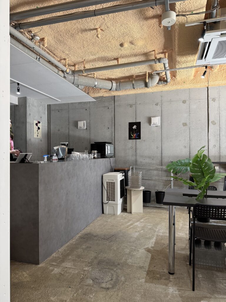 コンクリート打ちっぱなしの無機質な空間に植物が配置されていてとてもオシャレな店内でまさに韓国風カフェという感じ。