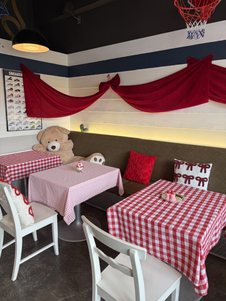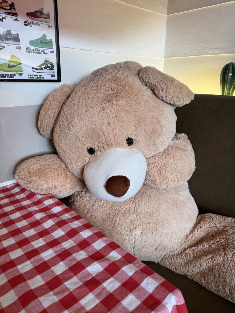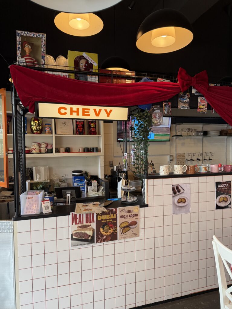 「CHEVY(シェビー)」さんは2025年7月5日にオープンしたカフェで店内には可愛いクマさんのぬいぐるみが置いてあります。