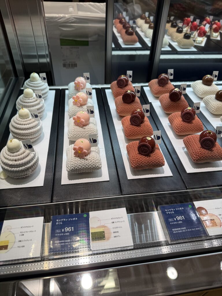 モンブラン ジャポネ プラリネは「神戸阪急」限定、季節のケーキとしてさくらのザブトンモンブランがありました。