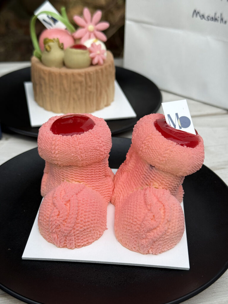 ザブトンモンブラン以外にカバン型のチーズケーキや靴型、ミトン型と見ているだけで楽しくなるケーキ、ぜひ一度味わってみてください!