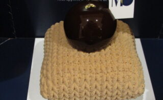 ホワイトチョコムースの中にはマロンと洋梨のムース、洋梨のコンフィチュール、そしてマロン生地のモンブラン。