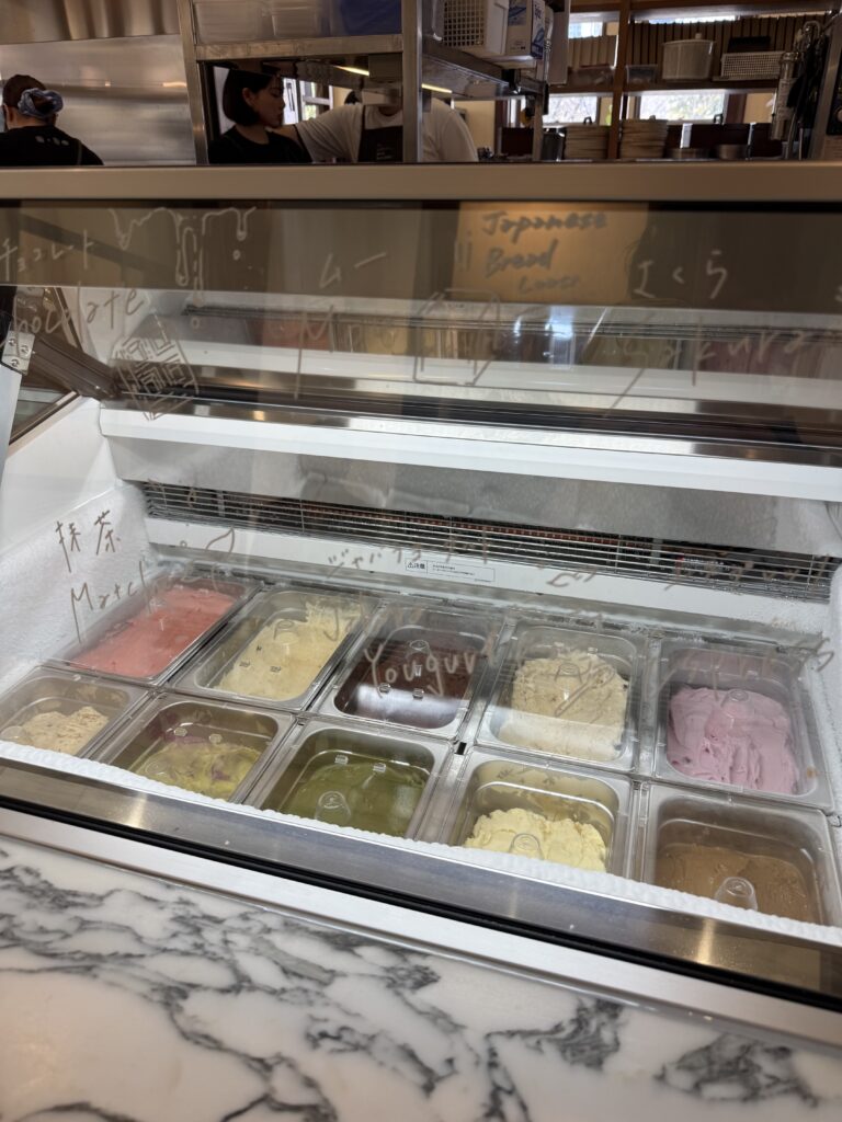 キッチンにはワッフルやジェラートが置いてあるブースがありました。