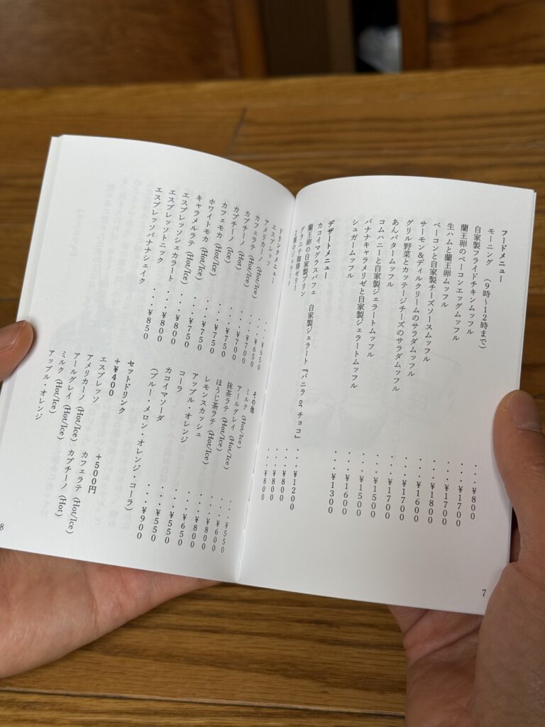 メニューブックは図書館のイメージさせる雑誌風になっていて遊び心も。