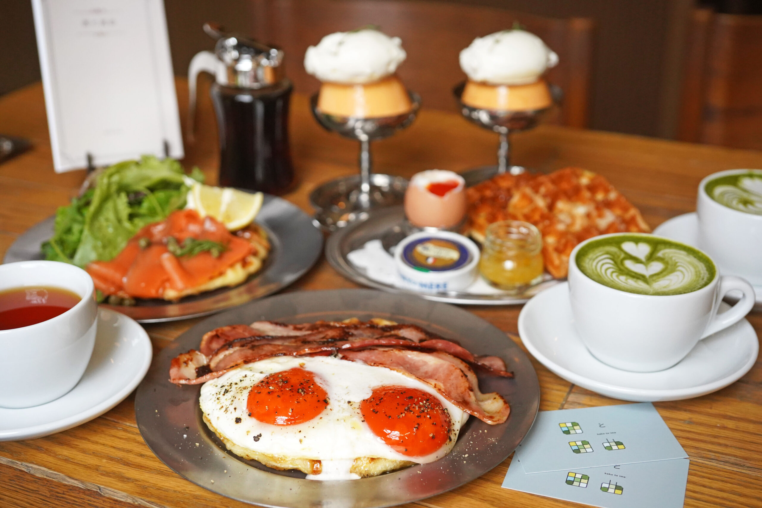 ムッフルはシュガーやあんバター、バナナキャラメリゼと自家製ジェラートといったスイーツ系に加えて、蘭黄卵のベーコンエッグ、サーモン&ディルクリームや生ハムと蘭黄卵といった食事系がありました。