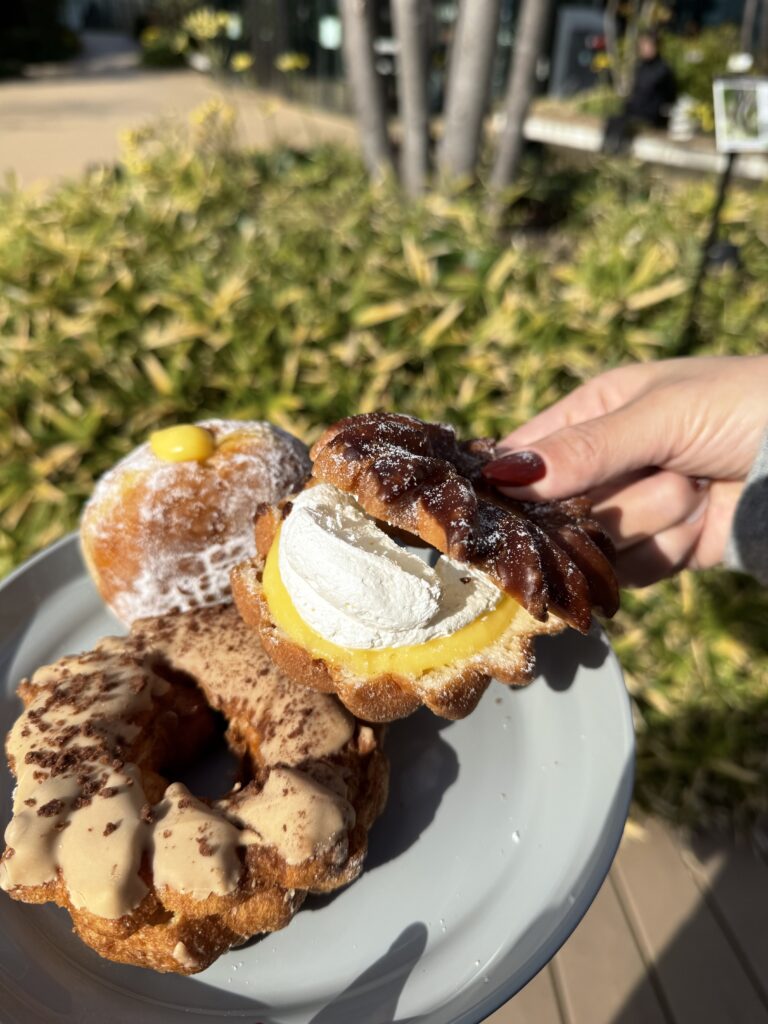 バニラカスタードとホイップをカヌレドーナツでサンド、もっちり食感がくせになりますね。