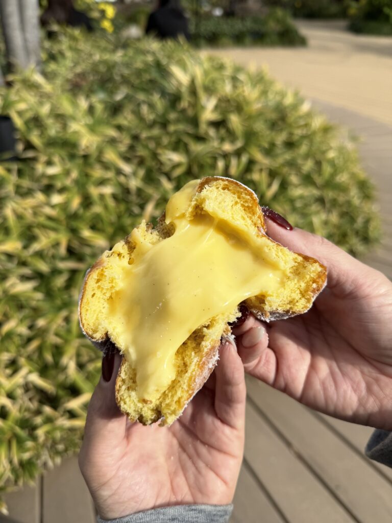 かぼちゃと芋を練り込んだふわふわとろける生地に卵感たっぷりカスタードを詰め込んだドーナツ。