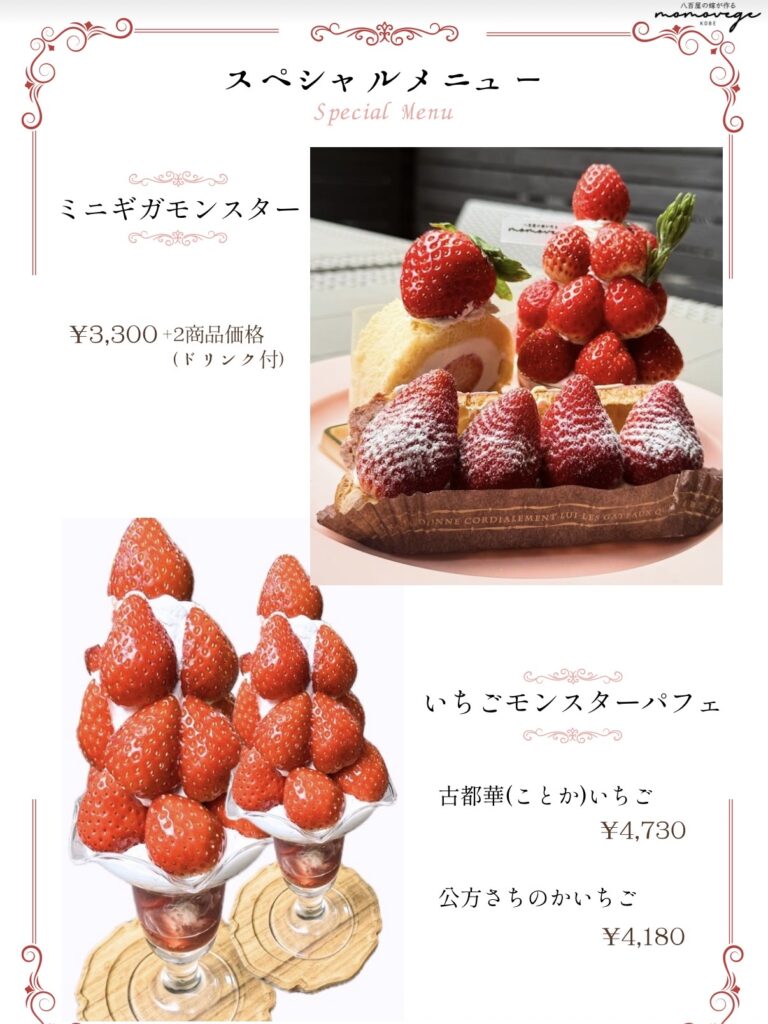 他にもフレンチトーストや大福、スムージーと様々な品種の苺をいろんなスイーツで楽しめ満足度の高いメニュー。
