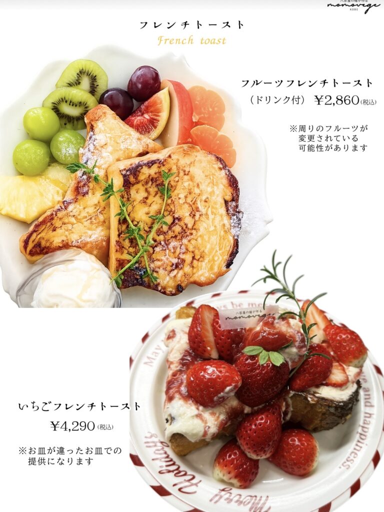 フレンチトーストは苺、いろんなフルーツが楽しめるものがありました。