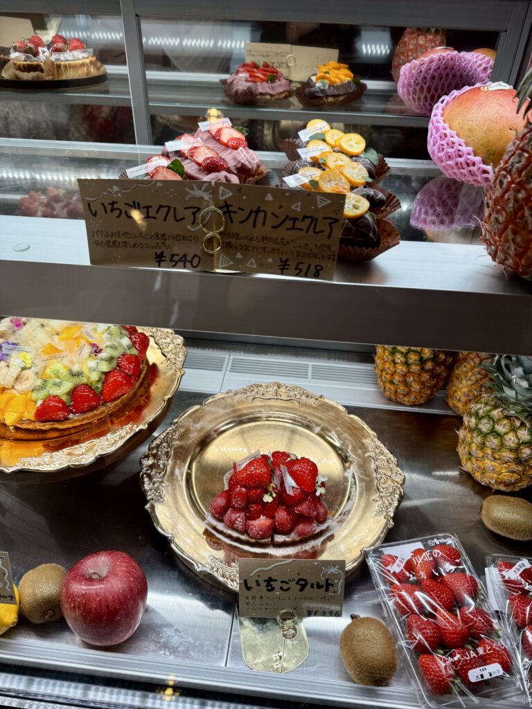 旬の苺を使ったタルト、ロールケーキやエクレアがあり、他には南国フルーツやミックスタルトがありました。