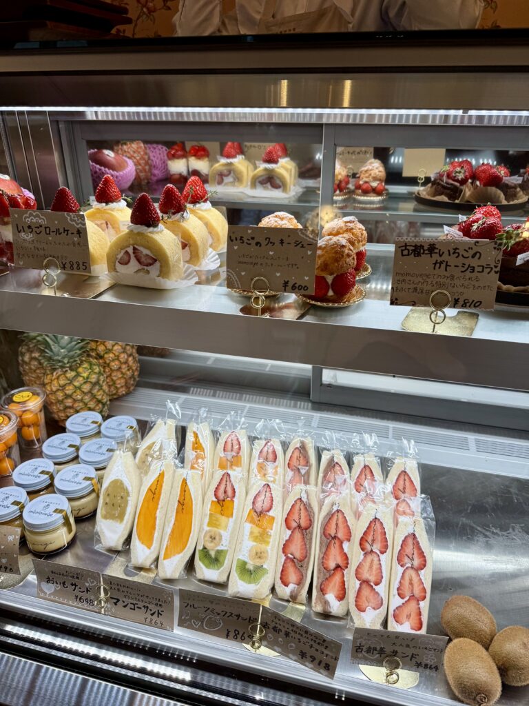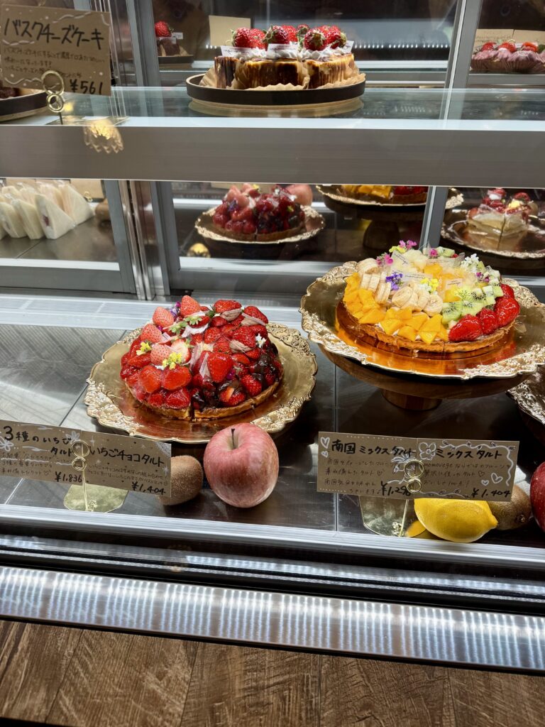 お店に入ると目の前にショーケースがありカラフルなフルーツを使った様々なスイーツが並んでいました。