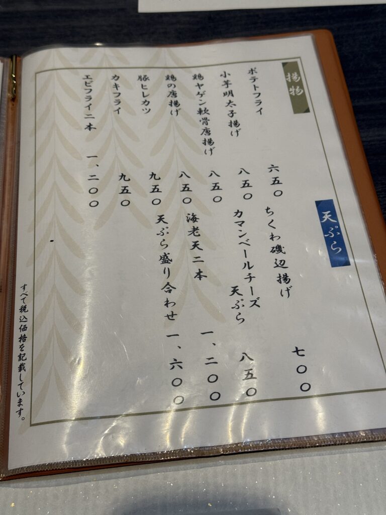 エビフライやカキフライ、豚ヒレカツなど揚げ物、天ぷらもありました。