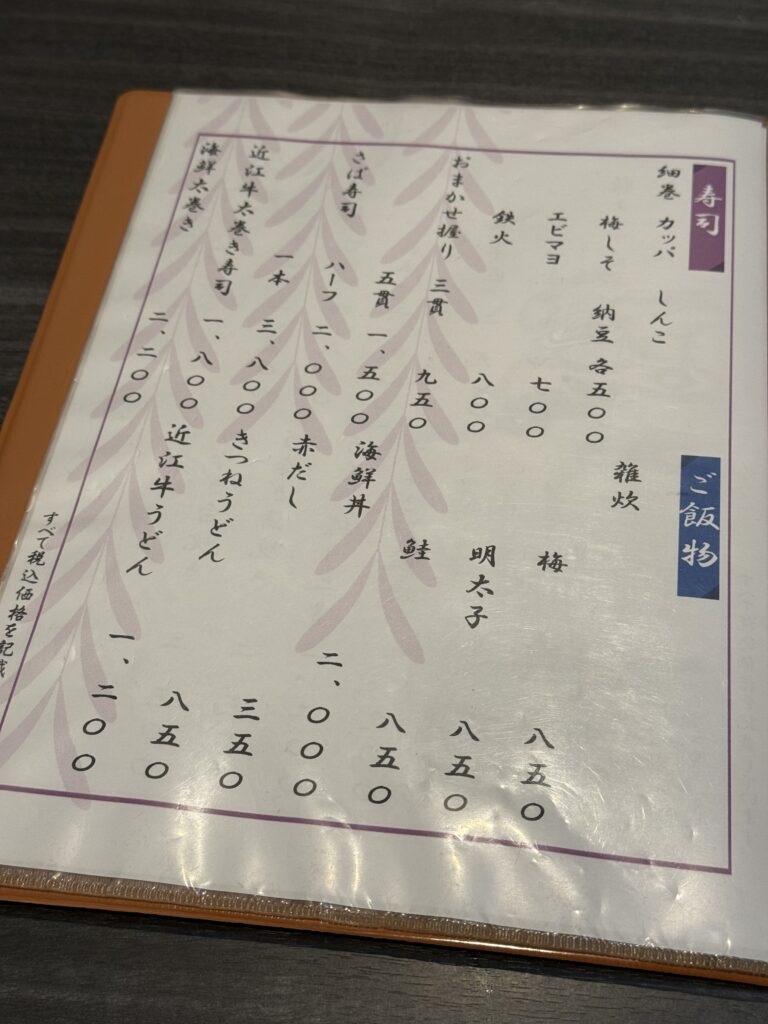 寿司、海鮮丼、うどんなどご飯・麺類があります。