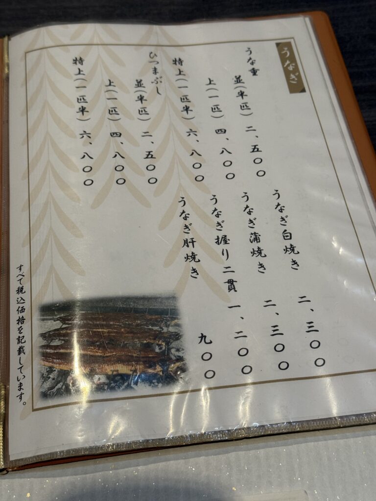 そして鰻を使った料理はうな重、ひつまぶし、うなぎ白焼きなど。