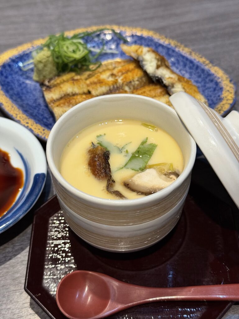優しい味わいの茶碗蒸しで中には鰻や蒲鉾などの具材が入っています。