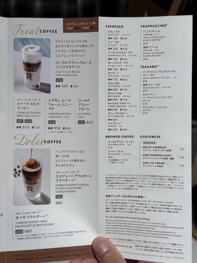 それ以外にはラテ、カプチーノ、エスプレッソ、フラペチーノ、そしてティーというラインナップ。