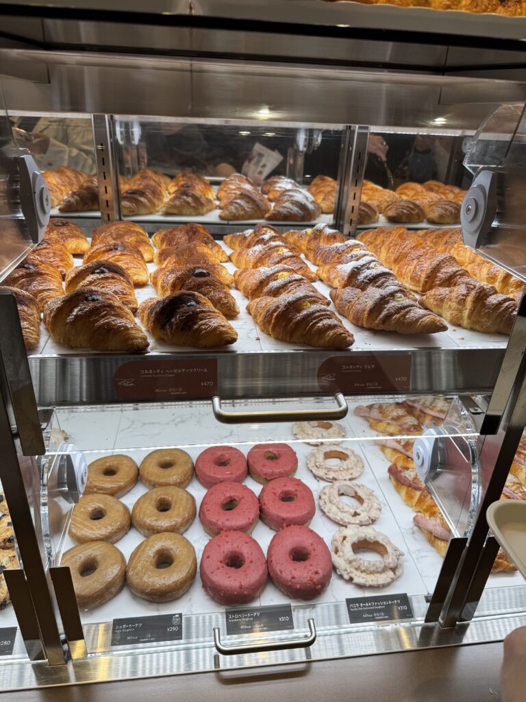 「リザーブカフェ」でしか食べる事ができないイタリア版クロワッサン「コルネッティ」を初めドーナツなどは自分で取るスタイル。
