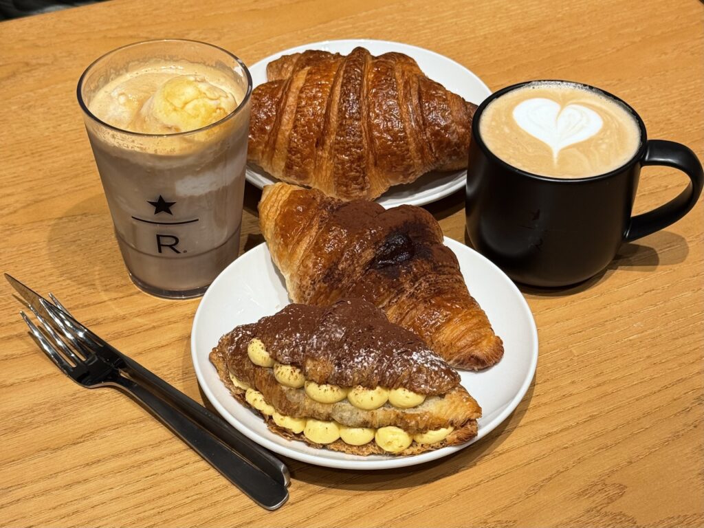 普段のスタバとはまた違ったオシャレな雰囲気の中、エスプレッソを使った多彩なビバレッジとイタリアのクロワッサン「コルネッティ」を味わう事ができます。