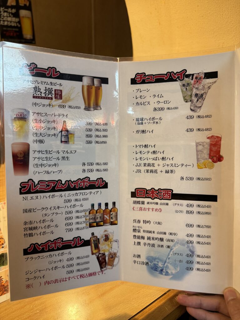 ドリンクはハイボール、ビール、日本酒などがありました。