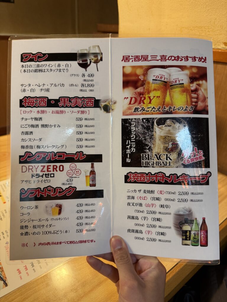 「居酒屋 三喜」さんは旬の魚を中心に100種類以上のメニューが味わえる大衆居酒屋