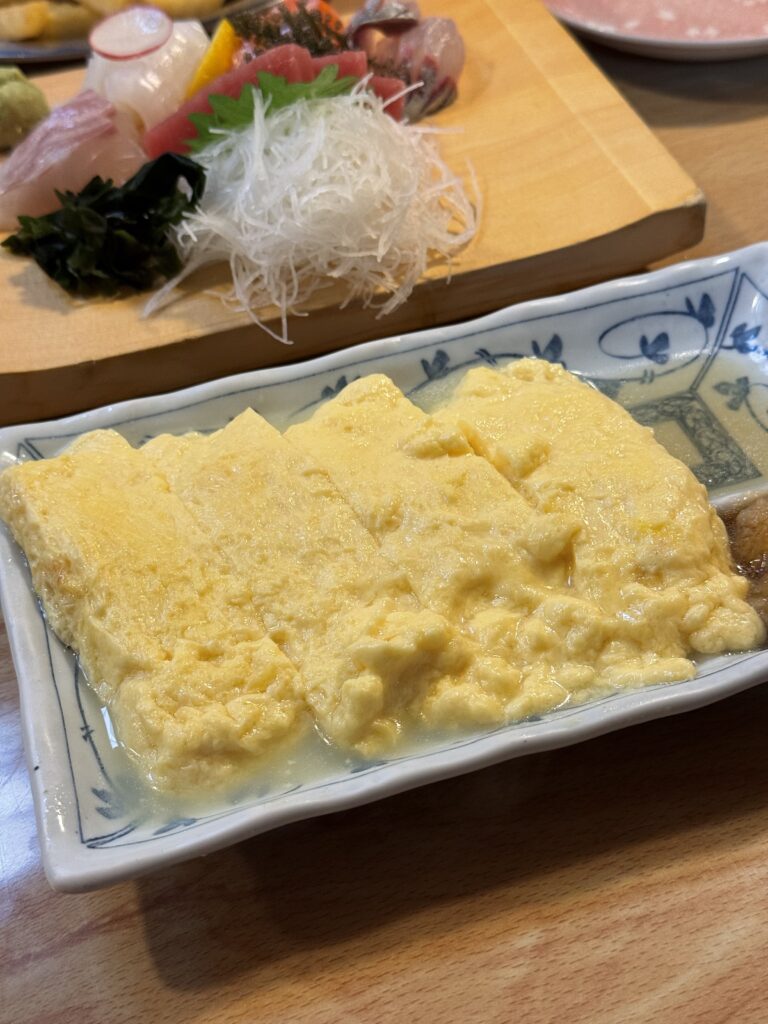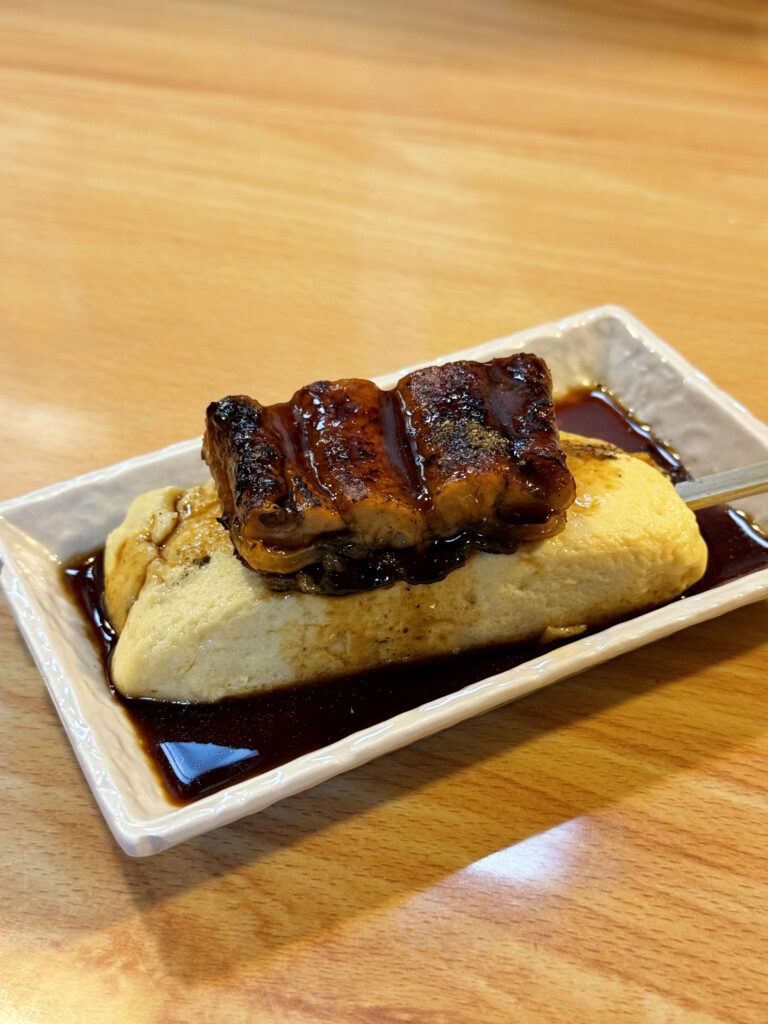 香ばしく焼かれた鰻、だし巻きにコクあるタレがたっぷりとかかっています。