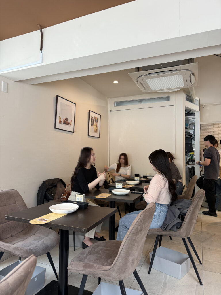 店内はクリーム色を基調とした落ち着いた雰囲気で、テーブル席28席と外にはテラス席もあります。