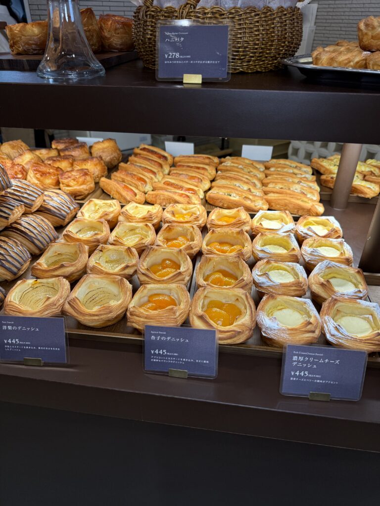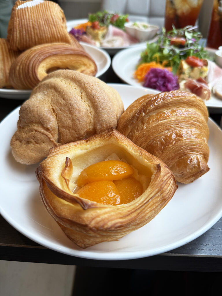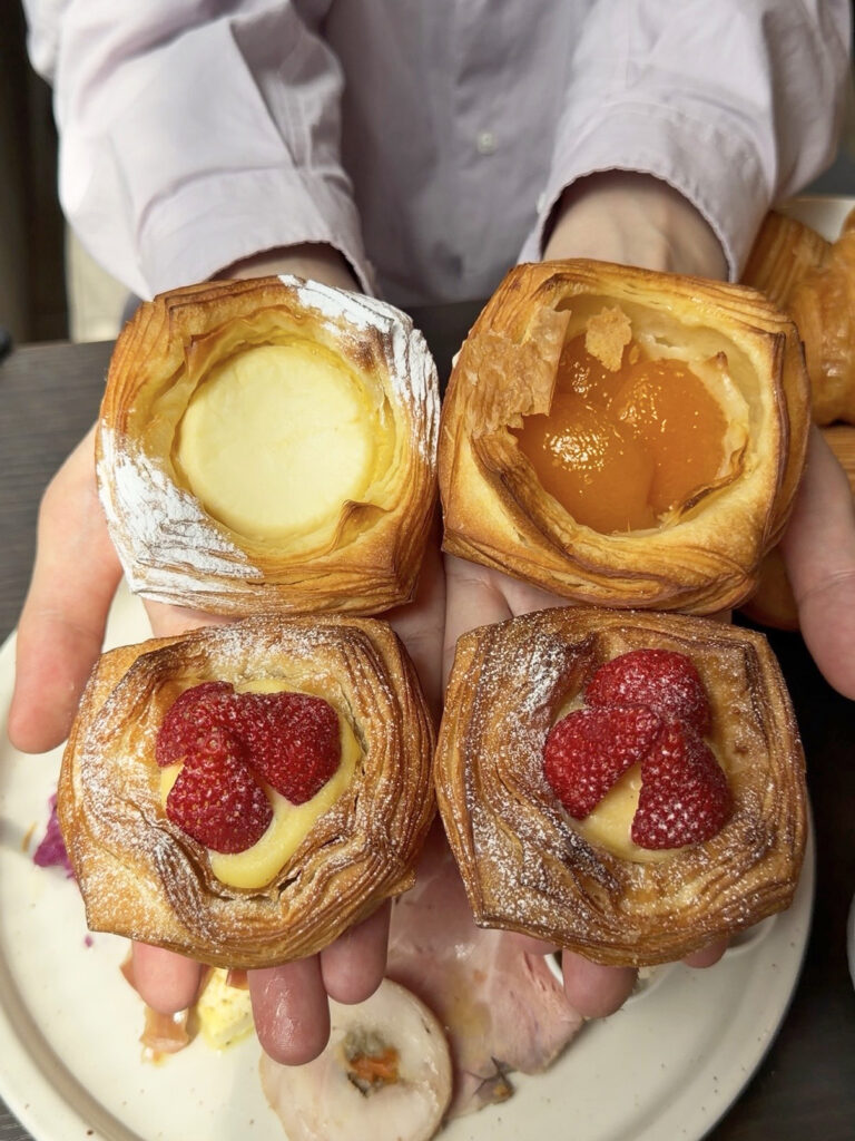 フルーツを乗せたデニッシュにパンオショコラ、バタースコーンなどもありました。