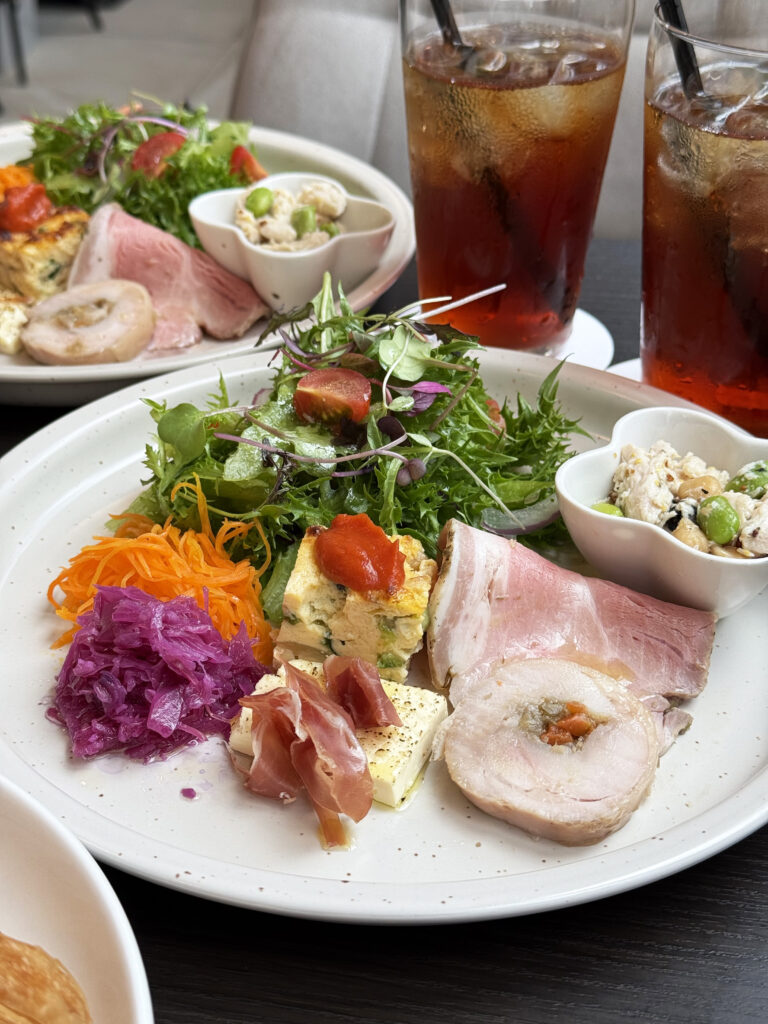 日替わりランチプレートはキャラットラペ、サラダ、オムレツ、ハムと彩り鮮やかでいろんなものが味わえます。