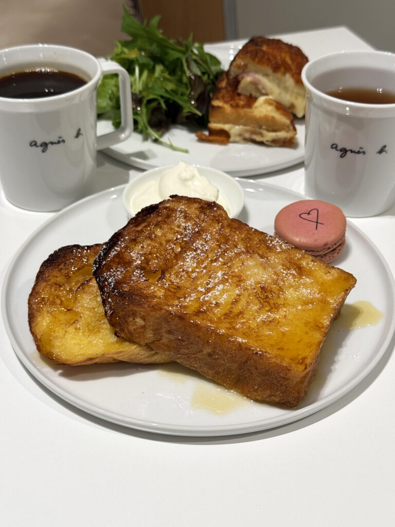 パリ発のブーランジェリーのパンを使ったクロワッサンやフレンチトーストなどのモーニングセットに「ユーハイム」さんのバウムを使ったスイーツも食べられます。