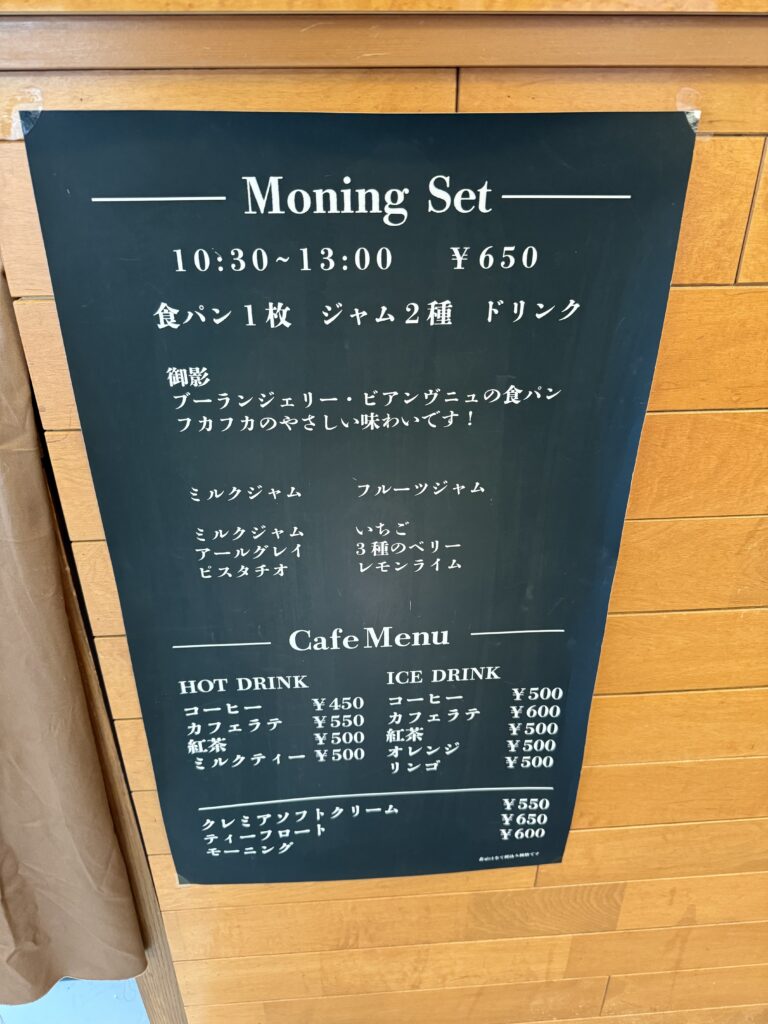 13:00まではモーニングメニューが頼めてミルクジャムとフルーツジャムを楽しめます。