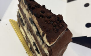 チェリークリームの酸味に、重厚なショコラの味わいそこにアマレットのリッチな風味を楽しめるミルクレープ。